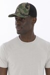 Front panels: 100% cotton twill. Mid and back panels: 100% polyester mesh. 6-panel. Adjustable snapback closure Mid profile Structured.